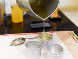 Kiedy mamy już wosk z dodatkami, jest on stopiony i wlewany do formy lub pojemnika. Przed zastygnięciem wosku, w środek wkładany jest knot, który później pozwoli nam na zapalenie świecy.